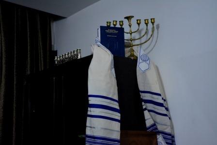 Plus tard dans la soirée, nous retrouvons Sherzad Mamzani, le leader de la communauté juive au Kurdistan irakien. Il nous attend au Kurdish Jewish Community. Dans l’appartement composé d’un lieu de vie principal et de trois petites pièces, la communauté a recréé un univers marqué par l’histoire et la culture juive. Se mêlant aux livres religieux, une ménorah trône fièrement sur les étagères. Dans cette petite pièce sobre, un des murs est recouvert d’images de la Shoah. Face à ce triste défilé de photos, les membres du Kurdish Jewish Community ont accroché un drapeau bleu et blanc, un lion fier dessiné au centre : « C’est le drapeau de Jérusalem ! » nous indique Sherzad. Sur un bureau, des rouleaux de la Torah se mêlent à quelques kippas, dont l’une d’elles porte les couleurs du drapeau kurde irakien : « Une kippa kurde ! C’est ma mère qui me l’a spécialement tricotée ! » affirme Sherzad, le sourire aux lèvres.
