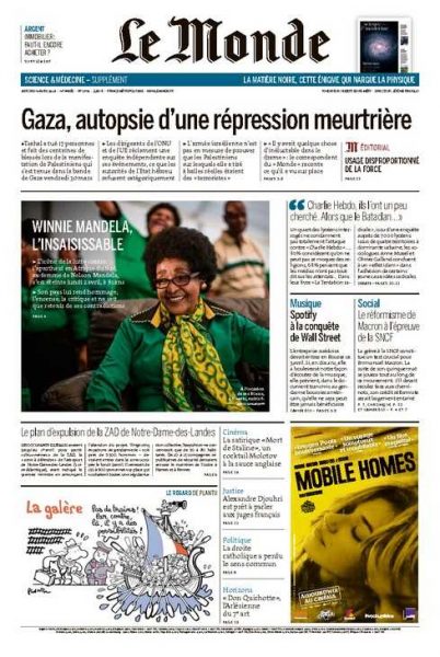 Sur plus de deux pages le correspondant en Israël, plutôt l’émissaire de ce quotidien parisien au sein du mouvement Hamas, nous raconte, notamment sur les réseaux sociaux, que la « marche du retour n’est qu’essentiellement pacifique, l’écrasante majorité des manifestants ne représentent aucun danger pour Tsahal. »