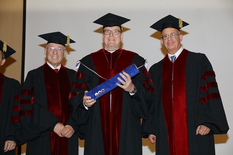 Le titre de Docteur honoris causa de l’Université lui a été remis « En reconnaissance de son engagement profond en faveur de la préservation de l’environnement au bénéfice des générations futures, ses efforts pour la promotion de la coopération multilatérale en vue du développement de nouvelles solutions aux défis environnementaux, en particulier liés au climat, à l’eau et à la biodiversité; ses liens chaleureux avec la communauté juive de Monaco, et sa longue amitié et son soutien pour Israël et le peuple juif ».