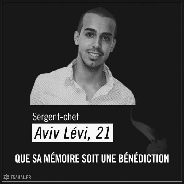 Aviv Levi qui a grandi à Petah Tikva était l’aîné d’une famille de quatre frères et sœurs. Ses parents Perry et Yaakov et ses frères et sœurs Noy, 15 ans, et Dan, 4 ans, ont appris la terrible nouvelle alors qu’ils étaient en vacances en Italie. Son frère Oriyan, 19 ans, sert également dans l’armée israélienne. Selon ses amis et sa famille, Aviv souhait plus que tout au monde servir dans la Brigade Givati. « Il ne voulait pas être recruté dans le Corps blindé, et quand l’armée l’a appelé à Givati, il n’y avait personne de plus heureux que lui », a déclaré un de ses amis.