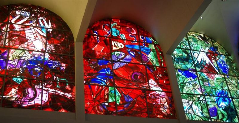 Tout spécialement aujourd’hui , je veux vous parler des vitraux de Chagall à la synagogue de l’hôpital Hadassah de Jérusalem.
