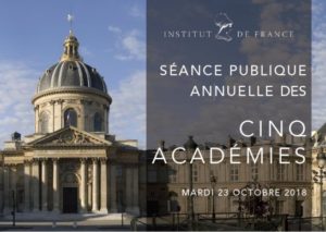 Séance publique annuelle des cinq Académies de l’Institut de France Paris, le 23 Octobre 2018