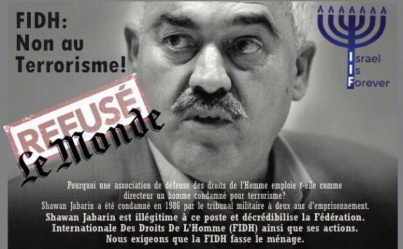 Shawan Jabarin. Elu en 2013 vice-Président de la Fédération internationale des ligues des droits de l’homme. Activiste du FPLP, organisation inscrite sur la liste des organisations terroristes des Etats-Unis et de l’Union européenne. Ce FPLP Auteur d’attentats criminels sanglants. Opération Entebbé. 1976.