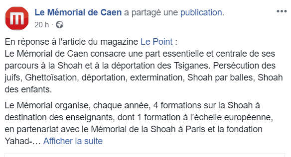 Dans un article paru sur le site internet du magazine Le Point, publié le mercredi 9 janvier 2019, une journaliste explique que durant les vacances de Noël, elle s’est rendue avec ses enfants au Mémorial de Caen (Calvados) pour une visite guidée familiale. Elle s’est dit très déçue et surprise, comme elle l’écrit dans son article :