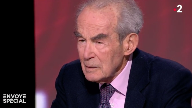 Robert Badinter est l’invité d' »Envoyé spécial » après la diffusion d’un reportage sur « l’antisémitisme au quotidien ». Que lui inspire la résurgence des actes antisémites en France (ils ont bondi de 74% en 2018), au point que des Juifs de France redoutent d’habiter dans leur propre pays ? « D’abord une réaction d’indignation à l’égard de ceux qui les menacent, qui se livrent à ces agressions verbales, voire physiques, qui peuvent aller jusqu’au crime. Y compris, ces dernières années, les vieilles femmes qu’on jette par la fenêtre, y compris la petite fille tuée par Mohamed Merah d’une balle dans la tête. » C’est la même chose, souligne-t-il, très ému, qu' »un comportement de SS des Einsatzgruppen dans la forêt ukrainienne, qui abattent les Juifs parce qu’ils sont juifs. C’est d’abord cette résurgence-là qui fait naître chez moi cette rage. Je ne croyais pas que c’était possible ».