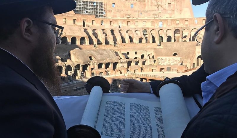 Deux mille ans après la destruction du 2e Temple et la construction du Colisée, un groupe d’un millier de Juifs s’est rendu lundi dernier dans les ruines de l’ancien cirque romain et a procédé à une lecture de la Torah. L’un des participants, le chanteur Ishaï Lapidot, a résumé le symbole de cette scène surréaliste : « Il y a des peuples qui écrivent leur nom sur des murs, mais nous chantons ‘Am Israël ‘Haï ».