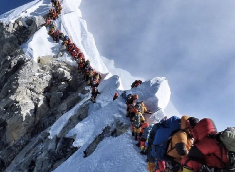 Impressionnante photo de l’embouteillage d’alpinistes au sommet de l’Everest. 10 alpinistes sont morts en une semaine en tentant d’escalader l’Everest. La faute notamment à une trop grande affluence au sommet du Mont. Nirmal Purja Magar, plus connu sur le Web sous le pseudo Nimsdai, ou Nims, est l’auteur de la photo : 320 personnes faisaient … la queue pour accéder au sommet. Zone qualifiée de zone de la mort.