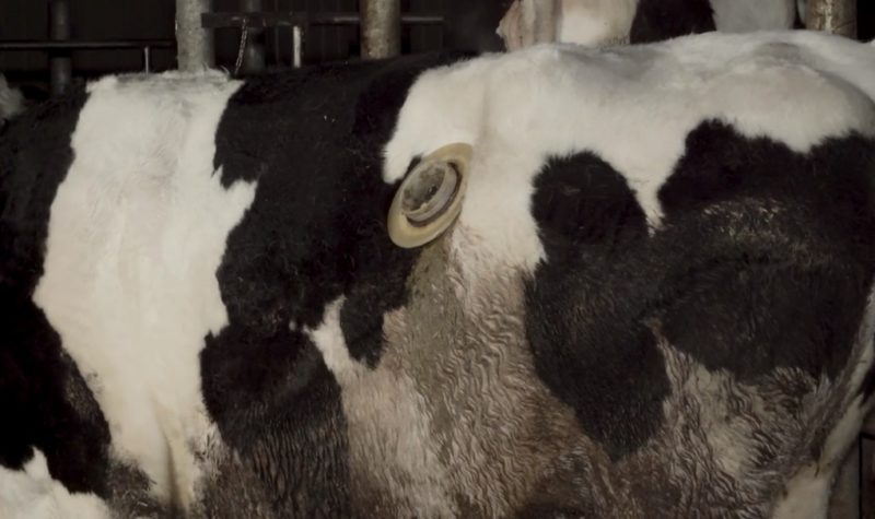 L’estomac des vaches est perforé par un trou de 15 cm pour étudier leur digestion, décrit l’association. Elles sont contraintes de vivre enfermées dans un bâtiment au sol bétonné, sans paille, à même leurs propres déjections. L214 dénonce également les conditions de vie de poulets tellement gros qu’ils ne tiennent plus sur leurs pattes. D’après les informations de L214, ces recherches, destinées à booster toujours plus la productivité des animaux via leur alimentation, auront des conséquences sur l’ensemble des animaux d’élevage. L214 porte plainte auprès du procureur de la République du Mans contre ce centre pour expérimentations en dehors des objectifs définis par la loi et pour sévices graves sur les animaux.