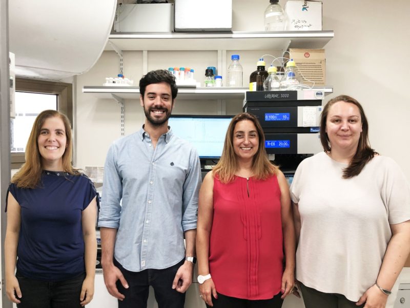 Sur la photo, de droite à gauche: le Dr. Anna Scomparin, le Prof. Ronit Satchi-Fainaro, le Dr. Joao Conniot et le Prof. Helena Florindo (Crédit: Galia Tiram).