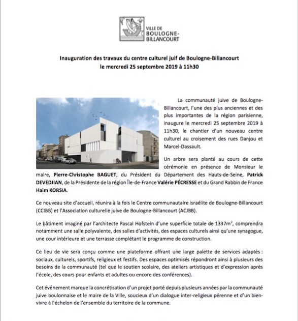 Boulogne Billancourt : Inauguration des travaux du centre culturel juif 23 septembre 2019 Tribune Juive France 0 Suivez-nous et partagez