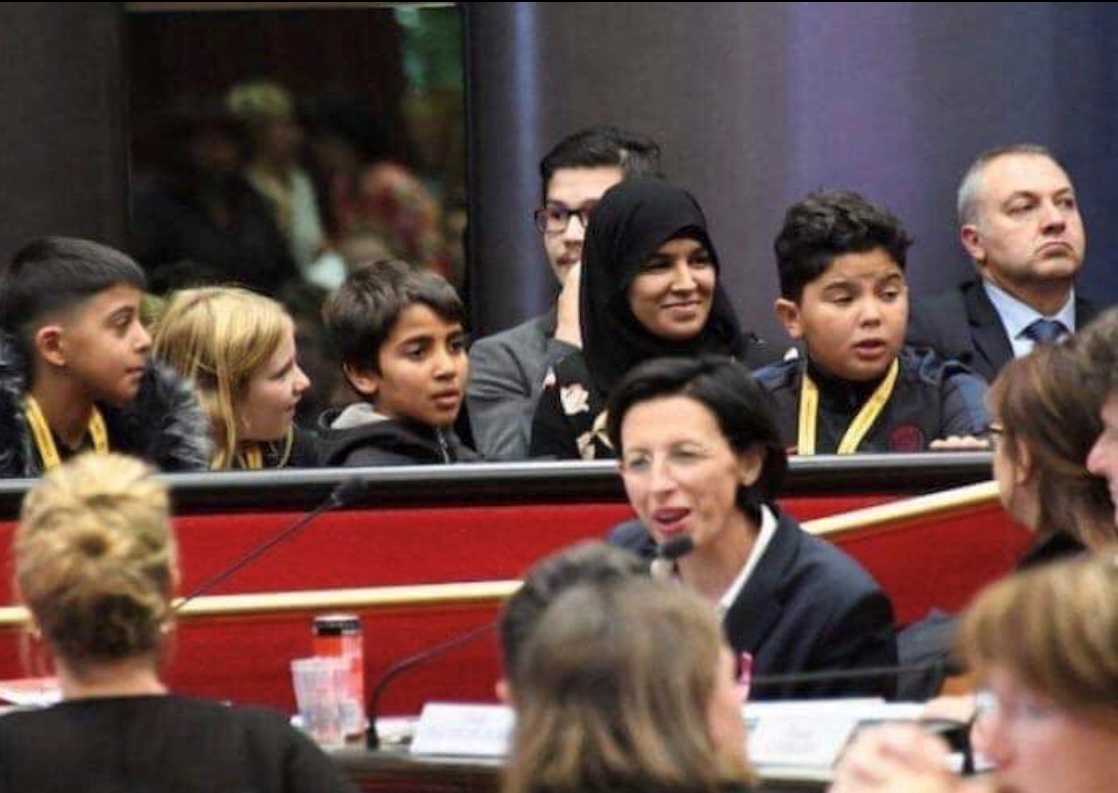 Placée derrière la main courante de la tribune du conseil régional, comme au tribunal, voici le petit enfant innocent, habillé en orange comme à guantanamo, dans les bras de son accompagnatrice scolaire redevenue mère, le temps du procès.