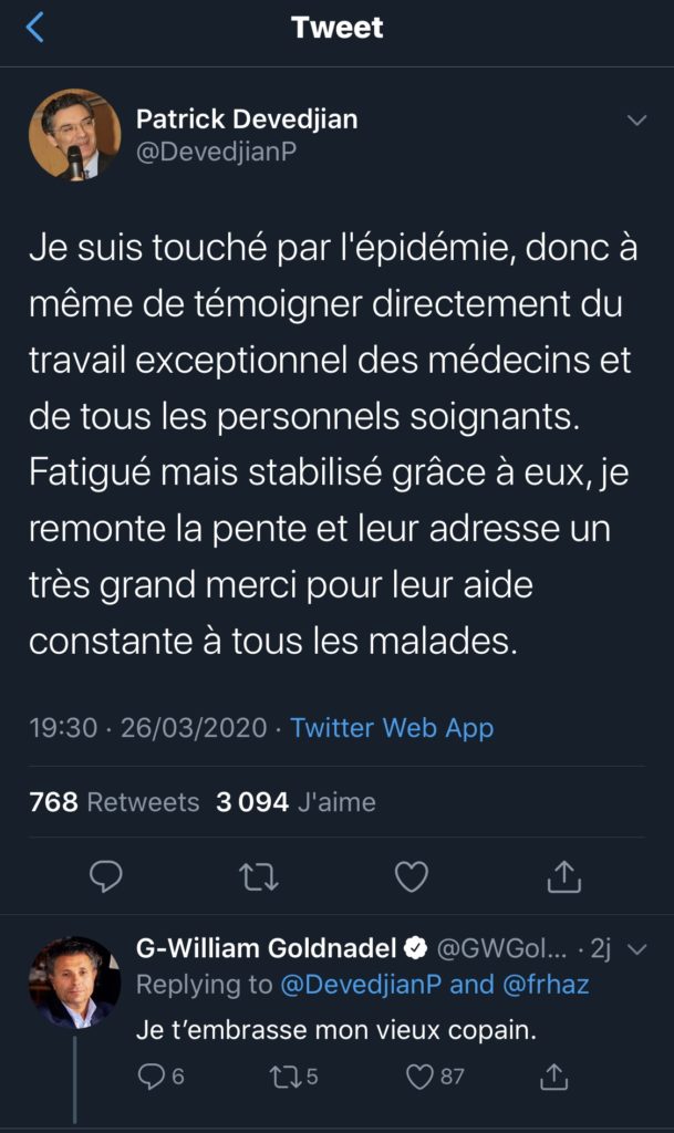 Patrick Devedjian, alors qu’il a annoncé jeudi être hospitalisé après avoir contracté le Covid-19, alors qu’il a remercié via twitter le personnel soignant, est décédé cette nuit.