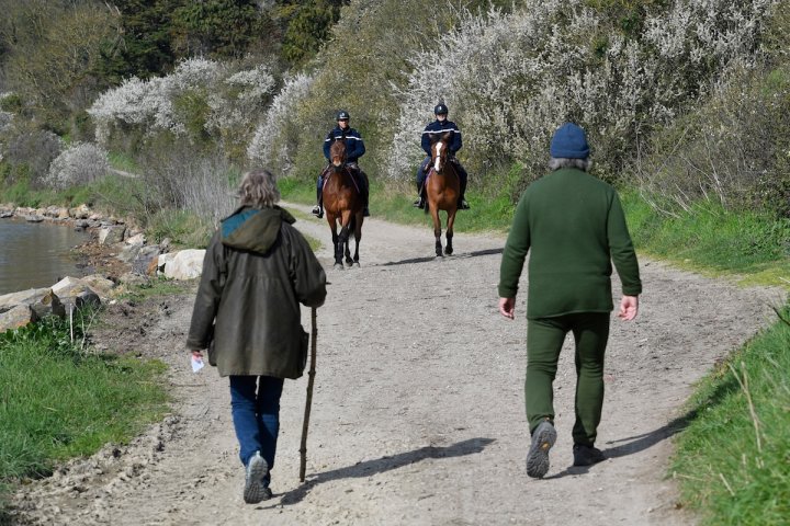 À quelques centaines de mètres du Rouet, un jogger s’époumone sur les hauteurs du vallon de l’Aigle. Le jogger se sent seul au monde, alors qu’il est passé sans le savoir entre les mailles du filet tendu par les gendarmes. L’hélicoptère le rattrape (…) Les gendarmes ont déployé les grands moyens, ce week-end. Des unités du [PSIG | Peloton de surveillance et d’intervention de la gendarmerie], des gendarmes mobiles, des motards et des gendarmes mobiles sont venus prêter main-forte aux brigades territoriales. On croisera même des cavaliers de la Garde républicaine, en détachement pour arpenter le littoral sur leurs montures, tandis qu’au large, deux vedettes de la gendarmerie maritime et de la brigade nautique traquent d’éventuels plaisanciers. Un “show of force”, diraient leurs camarades de l’armée de l’air.