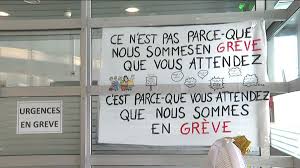 D’ailleurs, d’une manière générale, ça se sentait, aux Urgences : quel que fût le temps d’attente, plus personne ne bougonnait : En grève Mais Présents.