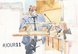 Les accusés, derrière leur vitre, écoutent. Regardent aussi les visages bouleversés qui malgré le masque leur couvrant la partie basse du visage expriment une douleur au delà de tout entendement. De son côté, le Président, ressemblant, par la douceur de sa voix et de ses questions, un peu à un grand prêtre, recueille les témoignages et distribue la parole entre avocats des parties civiles, avocat de la Défense et avocat général.