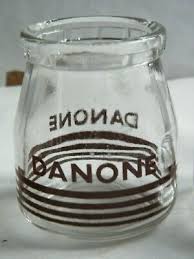 Elle achetait aussi des yaourts Danone vendus en pots de verre rayés de noir qu’elle versait dans une assiette creuse pour faciliter le mélange avec le sucre…