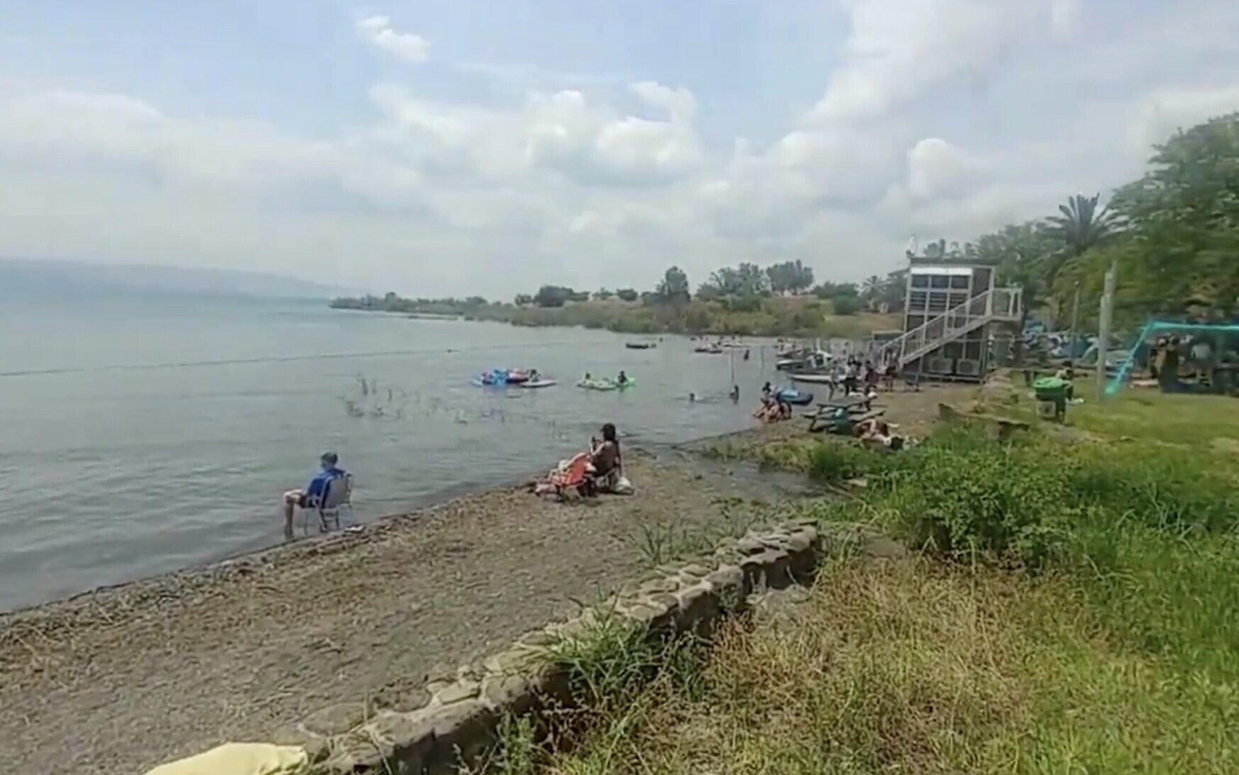 Des Israéliens au lac de Tibériade le 23 mai 2020. (Capture d’écran: Twitter)