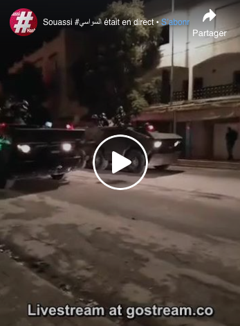 Pour dissuader les manifestants, un important dispositif de la garde nationale a été déployé, notamment à Ettadhamen, comme le montrent ces images tournées dans la nuit de lundi 18 janvier.