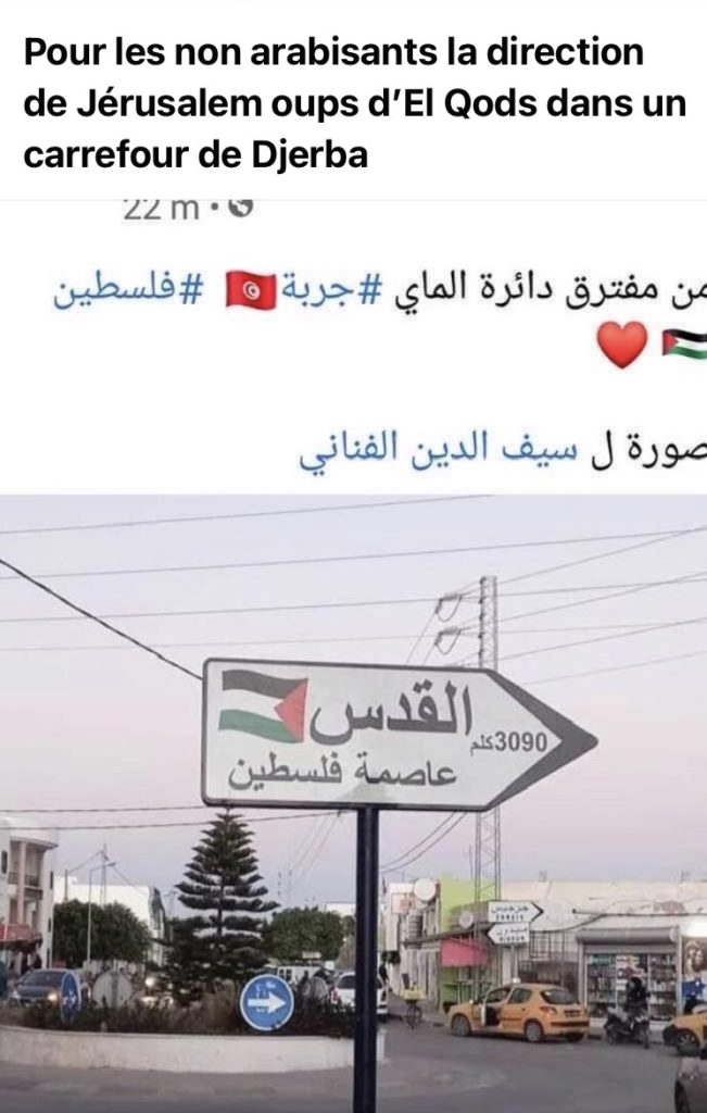 Pourtant… pourtant, les autorités de l’île ont décidé de planter un poteau d’indication à l’un des carrefours. Son utilité : aucune ! Il dit que Al Qods c’est à dire Jérusalem est à droite au bout de 3090 km !