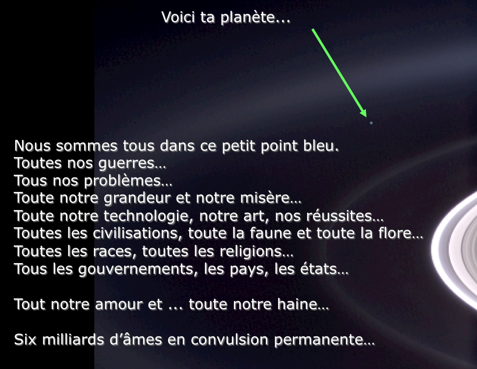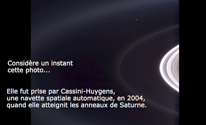 Je vais te montrer maintenant une photo pour les jours où tu te sentirais las de vivre.Lorsque tu penseras que tes ennuis sont énormes…… et que tu sentiras que ce que tu fais ou ne fais pas… représente une immense différence.
