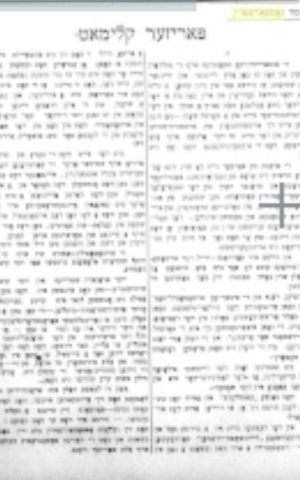 L’historien, philologue, philosophe, auteur, traducteur et journaliste Yoysef Gottfarsteyn (Joseph Gottfarstein) vit le jour le 25 décembre 1903, à Pren (Prienai), un shtetl situé au nord de la ville de Marijanpole, chef de lieu de région du sud de la Lituanie. Son père Movsha-Chaïm, commerçant, était né le 7 mai 1864 au même lieu-dit. À la saison douce, son père travaillait dans des vergers et l’hiver venu, vendait des fruits en faisant du porte-à-porte. La plupart du temps, il était donc loin de son foyer. Sa mère, Mariasha-Léah née Piatz en 1874 à Kaunas, toujours en Lituanie, était sa seconde épouse. De leur union naîtront deux enfants, Beile en 1900 et Joseph, trois années plus tard.
