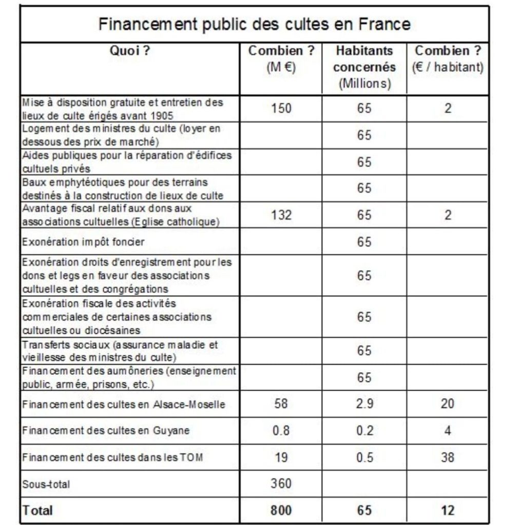 58 millions sur les 800 millions dédiés aux cultes en France.