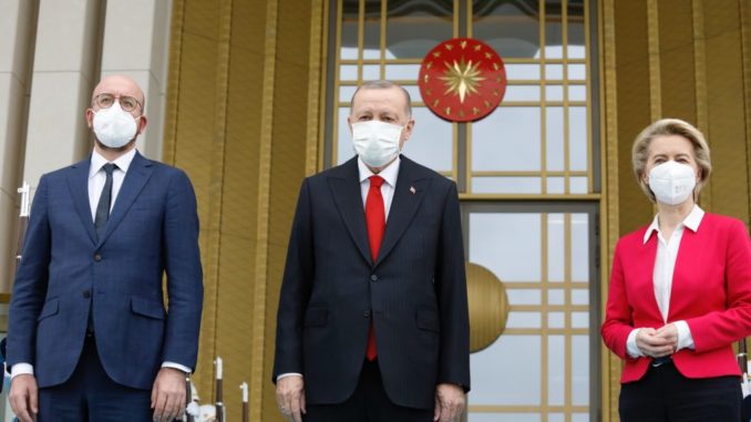L’Union-européenne (UE) a dépêché le 6 avril 2021 deux de ses « sommités « rencontrer le président de la république turque Erdogan à Ankara, capitale de la Turquie. La présidente de la commission européenne (organe exécutif) von der Leyen et le président du conseil européen (organe de décision) Charles Michel ont « honoré » Erdogan de leur déplacement.