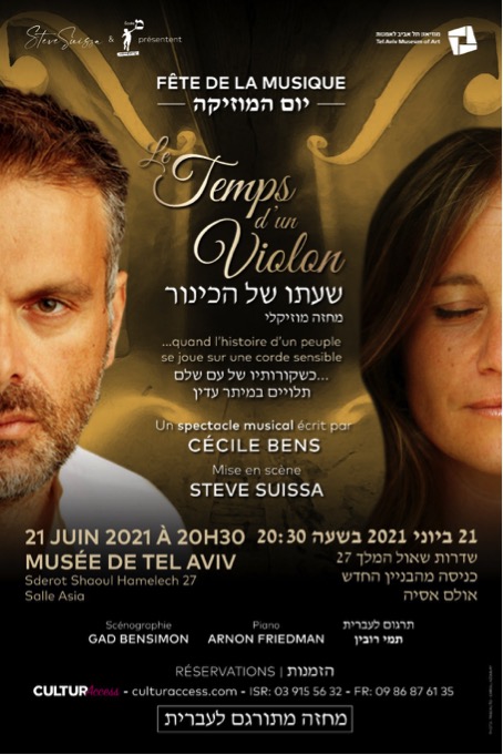 La mélodie du peuple juif résonnera LE TEMPS D’UN VIOLON le 21 Juin à Tel Aviv ! Une Voix, Un Violon et 2000 ans d’histoire… Un voyage exceptionnel interprété par Steve Suissa & Cécile Bens’ et mis en scène par Steve Suissa.