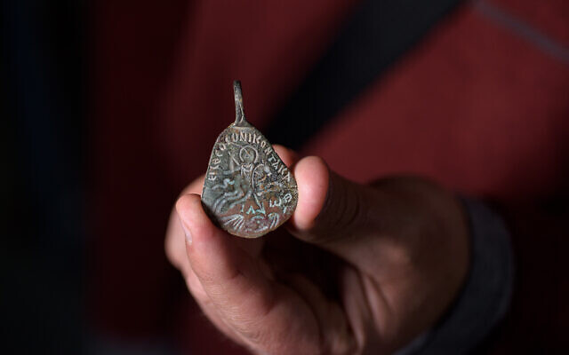 Un collier pendentif utilisé comme amulette protectrice et datant de la période byzantine il y a environ 1 500 ans (l’équivalent de l’époque talmudique en Galilée) a été remis à l’Autorité israélienne des Antiquités. L’amulette – qui porte des inscriptions et des gravures grecques – a été trouvée près de l’ancienne synagogue d’Arbel (Basse-Galilée) il y a une quarantaine d’années par Tova Haviv, l’un des premiers membres du moshav (village coopératif).