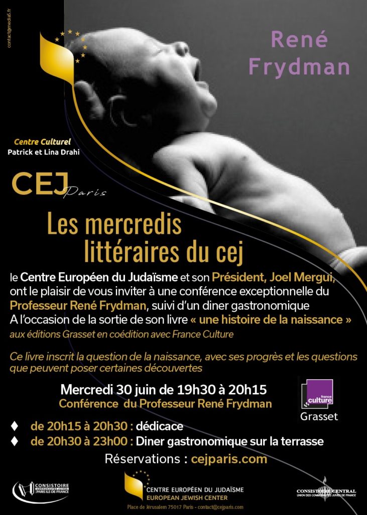 Dans le cadre de ses mercredis littéraires Le Centre Européen du Judaïsme vous convie à une conférence – dîner exceptionnel le Mercredi 30 juin 2021 à partir de 19h15*