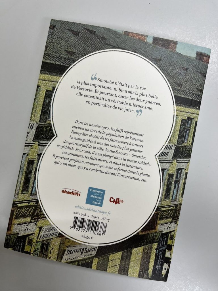 À partir d’une lecture attentive de la presse juive de Varsovie, des auteurs yiddish et de quelques documents filmés (qu’on peut voir encore sur YouTube), Benny Mer tente de faire revivre la vie quotidienne dans cette rue de Muranów, ainsi qu’on appelle ce quartier qui bientôt se fermera en ghetto, puis sera anéanti par les nazis, mais où se trouve aujourd’hui, après sa reconstruction, le monument aux héros de l’insurrection du ghetto avec, en face, Polin, le musée d’histoire des Juifs polonais…