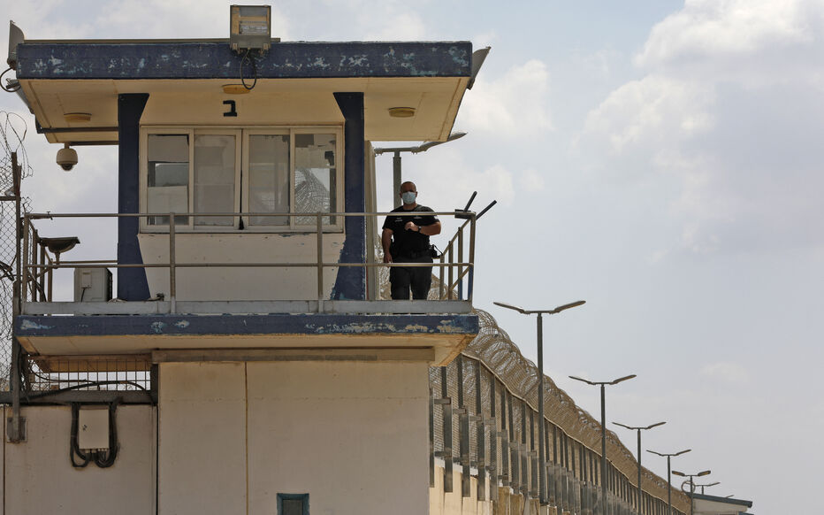 Un gardien aperçu à une tour d’observation le long d’un mur de la prison de Gilboa, d’où six prisonniers palestiniens se sont évadés, le 6 septembre.(Crédit photo : AMMAR AWAD/REUTERS)