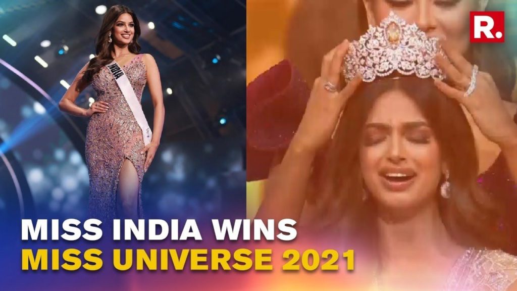 Miss India a fait une escapade sur scène ) l’appel de l’animateur Steve Harvey après qu’il a annoncé qu’elle avait remporté le concours Miss Univers 2021. Harnaaz Sandhu était entourée de 79 autres participantes au concours qui se tenaient à l’arrière-plan alors que des confettis dorés pleuvaient et que la foule applaudissait tandis que la gagnante de l’année dernière mettait une couronne sur sa tête.