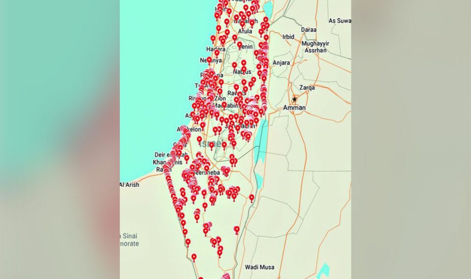 L’article était intitulé « Juste un faux mouvement ! » et présentait une « carte des cibles israéliennes », qui montrait presque toutes les communautés peuplées du pays étiquetées d’un point rouge.