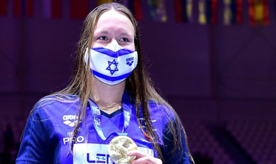 L’athlète de 18 ans s’empare de la première place du 50 mètres brasse féminin. Il s’agit de la première victoire d’un nageur israélien aux championnats en petit bassin.