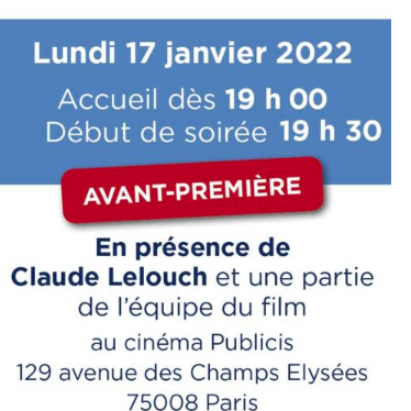 La Wizo vous invite a son avant première du film de Claude Lelouch “ l’amour c’est mieux que la vie “ lundi 17 janvier au cinéma Publicis