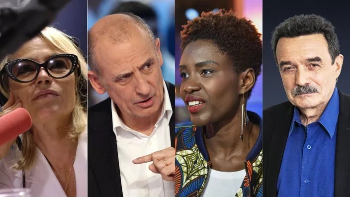 De gauche à droite: Laure Adler, Jean-Michel Aphatie, Rokhaya Diallo et Edwy Plenel. France Inter / France Inter / JACQUES DEMARTHON/AFP / JACQUES DEMARTHON/AFP / IBO/SIPA / IBO/SIPA / Jack Tribeca / Bestimage / Jack Tribeca / Bestimage