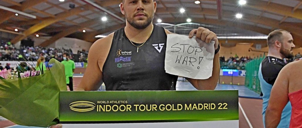 2 mars. World Indoor Tour. MadridAlors que la dernière réunion du World Indoor Tour de l’hiver a vu de nombreuses performances européennes à Madrid, TJ … Lire la suite de Jiro Mochizuki, photographe sportif, capte ce moment exceptionnel dans le monde du sport: « STOP WAR », dit le vainqueur Konrad Bukowiecki