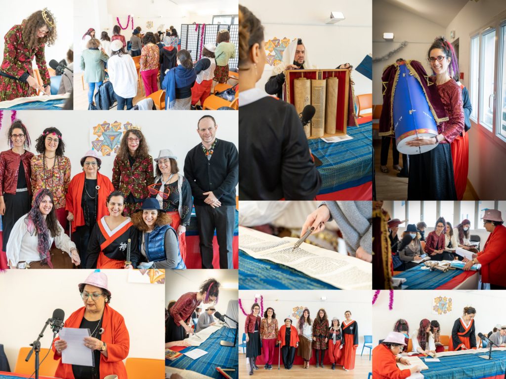 C’était une magnifique lecture de la Torah suivie de la lecture de la Megillah d’Esther en présence d’une assemblée de femmes et hommes déguisés et enjoués !