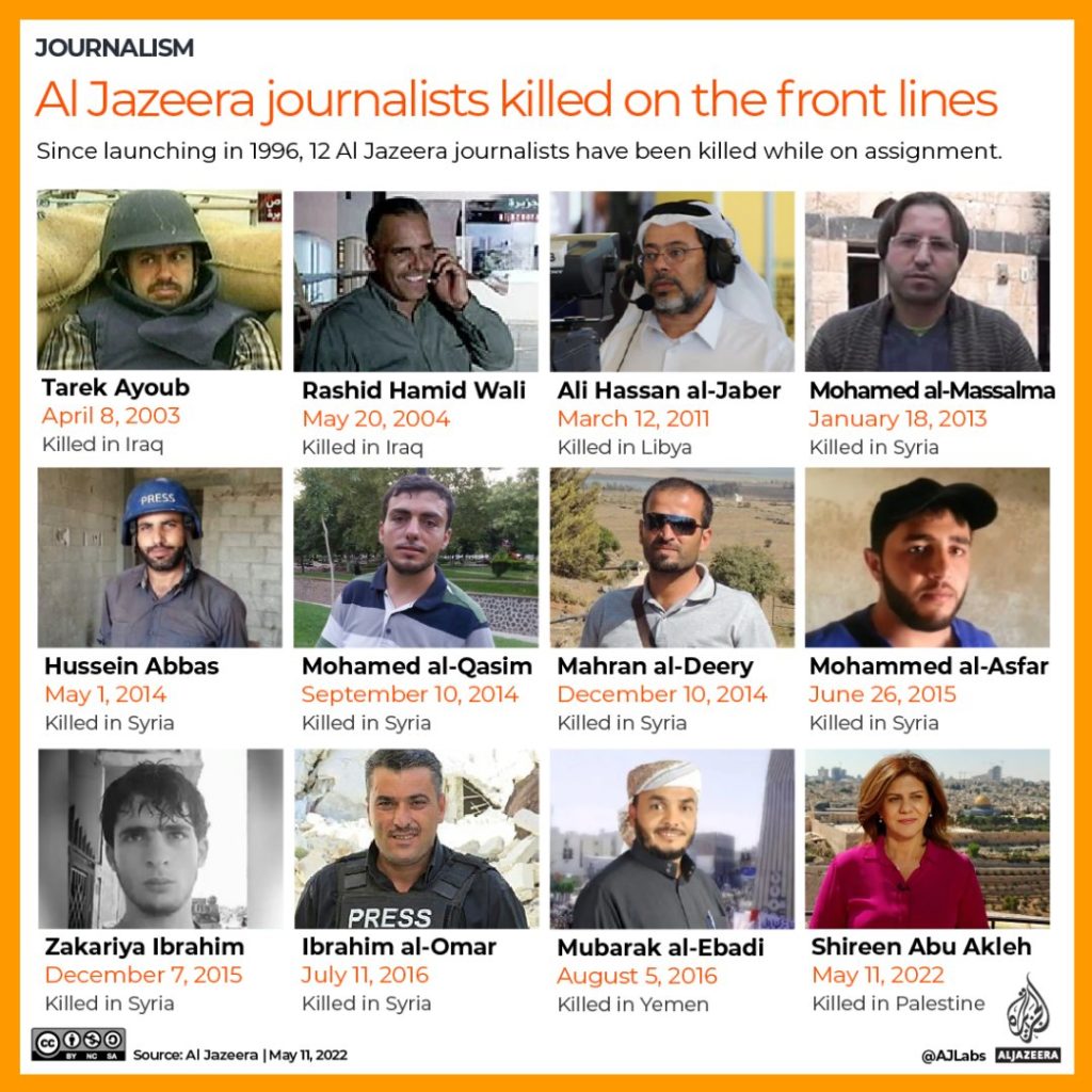 Merci Al Jazeera de nous démontrer que 11 journalistes tués en pays musulman ne valent pas 1 seul journaliste tué à proximité des Juifs. Ca nous donne toute la valeur que vous accordez à la vie humaine quand vous ne pouvez pas accuser les Juifs.