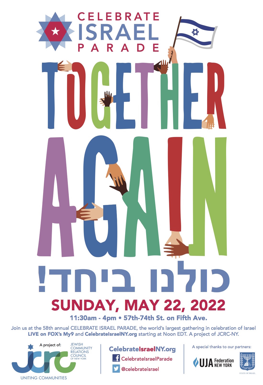 La manifestation est organisée par le JCRC-NY qui a en charge la communication juive de NY et l’UJA, avec le soutien de l’État hébreu.