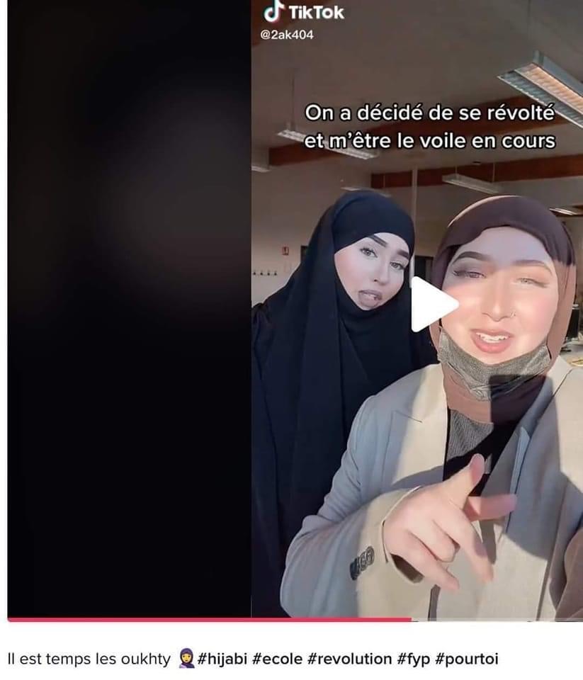 Le 23 août 2022, une influenceuse islamiste, suivie par 47 500 abonnés, publiait une vidéo sur TikTok, encourageant, en guise de défi, les jeunes femmes de confession musulmane à