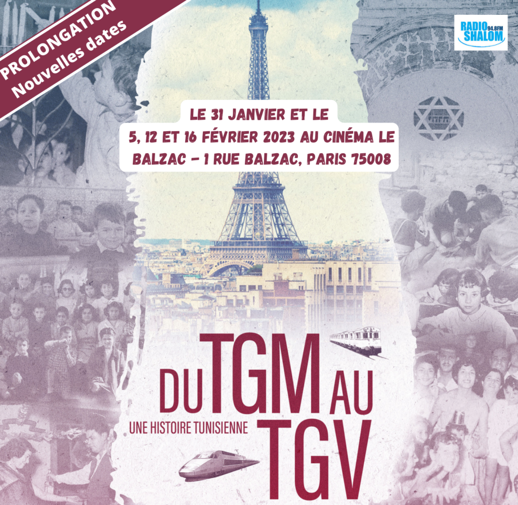 Le cinéma Le Balzac vous propose le film « Du TGV au TGM, qui retrace l’histoire des juifs tunisiens. Le parcours de la communauté juive de Tunisie, partie pour la France en quête d’une nouvelle vie.