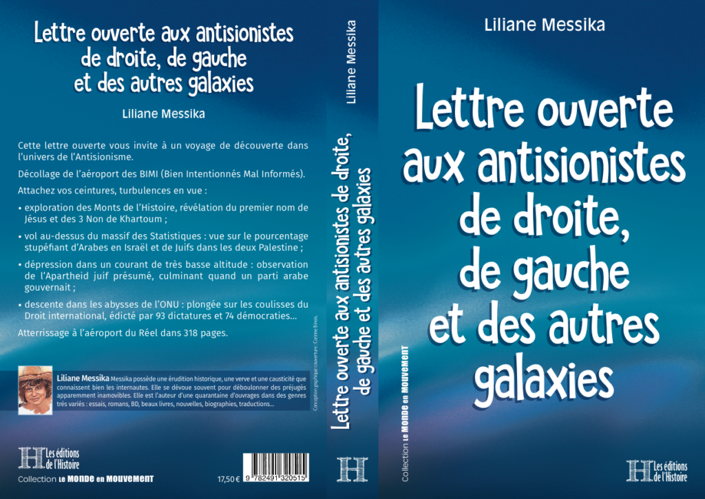 « lls sont peu nombreux de nos jours, celles et ceux qui connaissent les réalités historiques, civilisationnelles, culturelles et humaines auxquelles se rattache le concept d´antisionisme. Devant l´avalanche de contradictions, d´incohérences et d´inventions historiques pures et simples, il semblait urgent d´apporter des éclaircissements. Liliane Messika possède une érudition historique, une verve et une causticité que connaissent bien les internautes. Elle se dévoue souvent pour déboulonner des préjugés qui semblaient intouchables. Elle a donc décidé de mettre de l´ordre dans ce chaos. Démarche salutaire, qui devrait permettre aux BIMI (les Bien Intentionnés Mal Informés) de s´y retrouver. Et ainsi de repartir du bon pied. La lecture de cet ouvrage est donc recommandée à celles et ceux qui n´utilisent pas les oeillères de leurs préjugés pour éviter de regarder la vérité en face ».