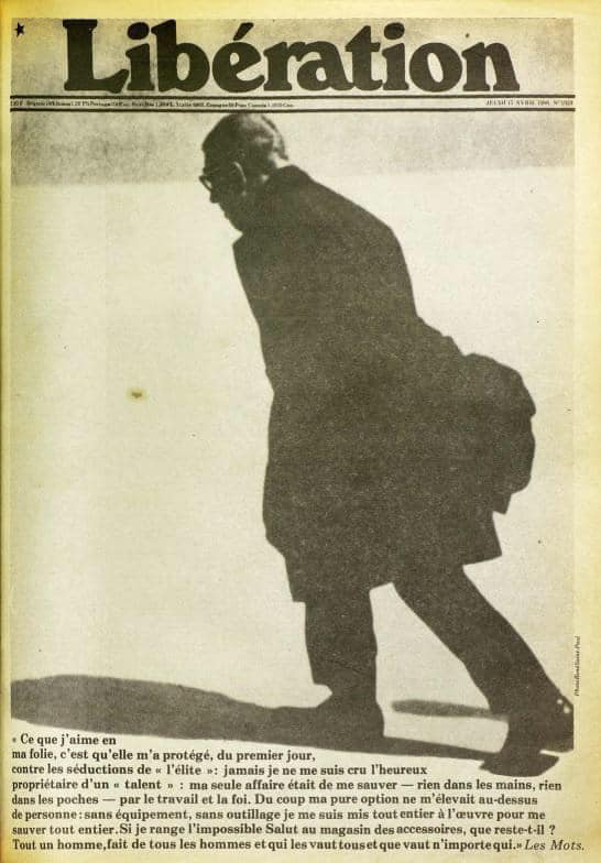 « Libération » devait bien un tel hommage à Sartre. Bien qu’affaibli par 2 AVC et une demi-cécité, le philosophe avait accepté en 1973 d’en être le directeur de publication. Le journal fondé par d’anciens maos était menacé d’interdiction et de poursuites par le pouvoir politique.