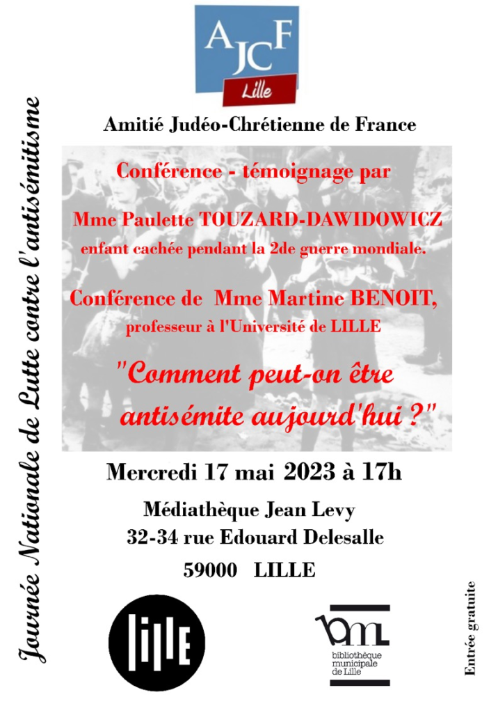 Paulette Touzard-Dawidowicz est Membre de la Fédération de la Licra Paris. Ex Présidente de la Fédération régionale Licra Nord Picardie. Ex Membre des Conseils et Bureaux exécutifs de la Licra jusque Patrick Gaubert. Ex Membre de plusieurs Commissions. Présidente de l’Association pour la Mémoire des enfants Juifs déportés de Lille Métropole et Nord Pas de Calais. Membre du bureau National du Comejd. Membre des FFDJF présidé par Serge Klarsfeld”.