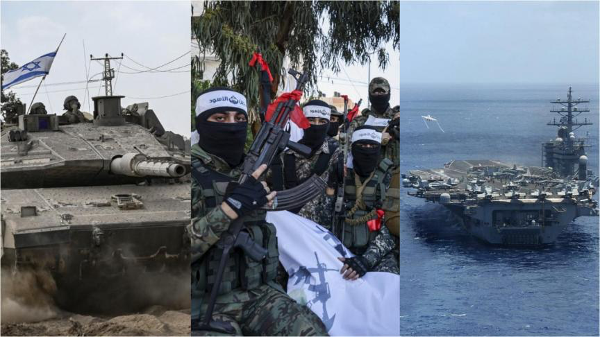 Le Président Biden va demander au Congrès une aide de quatorze milliards pour soutenir Israël. Deux porte- avions , des bases militaires flottantes, ont été envoyés à proximité et 2.000 marines des forces spéciales ont été mis sous alerte.