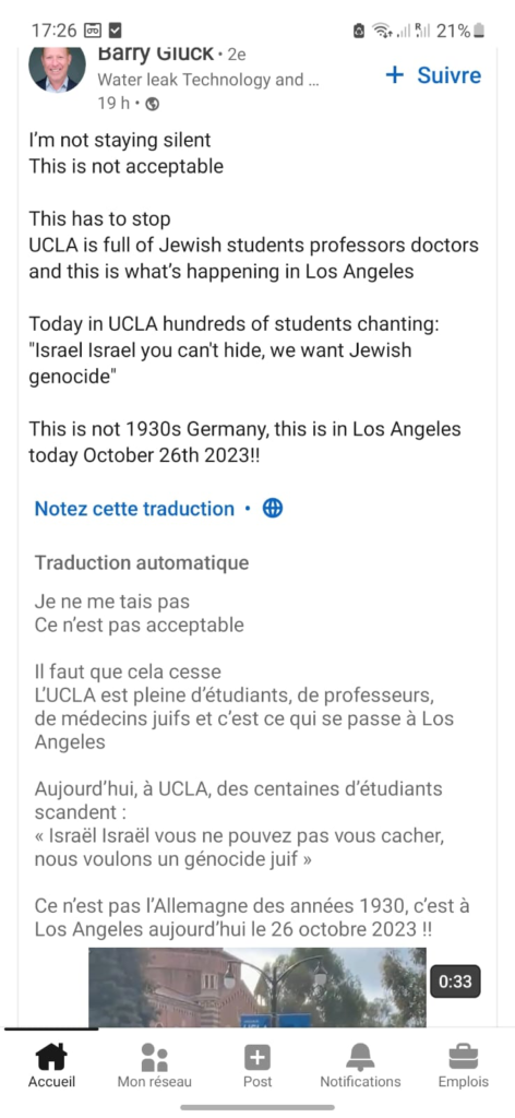 Ça se passe à UCLA, University California Los Angeles 28 octobre 2023 Tribune Juive Antisémitisme 0 Jeudi 26 octobre 2023 https://x.com/PatrioticCoach/status/1717302749354942932?s=20 UCLAuniversitésSuivez-nous et partagez