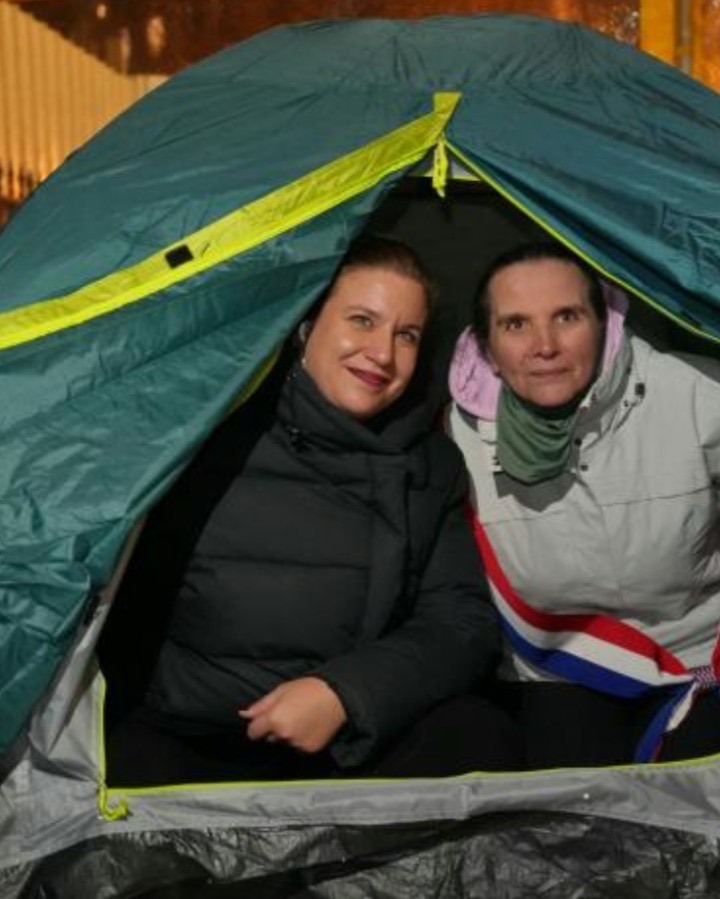 Sandrine Rousseau et Mathilde Panot ont posé hier soir sous une tente dans la rue pour la visibilité des migrants et SDF