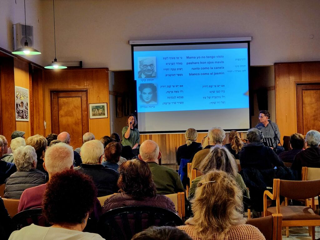 35 years ago, before my army service I volunteered as a youth movement guide in the city of Karmiel. Another guide there was Aviv Kutz, a smart young man with a great sense of humor. On 7.10 , Aviv, his wife Livnat and their 3 children’s were murdered by Hamas terrorists in their home in Kibbutz Kfar Aza. Like many others I felt the world turn apart. I realized that after such a large scale of tragic events, the Ghetto Fighters’ House must do more than what has been done until now: Together with Efrat Feldman who is an instructor and a wonderful singer, and Chava Cohen, the events director, we created a performance of songs and stories. Gladly we received the bless and warm support of Yigal Cohen, the CEO of the museum. For the last four months, we have been appearing entirely voluntarily in hotels and Kibbutzim that host thousands of war evacuees from the south and north. The performance offers an hour of respite and consolation to adults who have been torn from their homes and daily routines. We called the performance “It is allowed to love« : Songs, Stories and a Longing” which is a quote from one of Lea Goldberg’s poems, a well-known poet whose life story is woven into the performance. The responses are supportive, and heart-touching and I hope that this dear audience will soon return home safely.